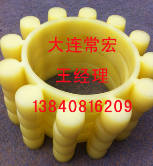 液力偶合器為了解決安裝不同軸等問題采用互嵌式彈性連接方式,在連軸節(jié)金屬弧型嵌塊之間,嵌有緩沖橡膠圓柱,橡膠圓柱均布在一個(gè)橡膠圈上,外觀形狀類似梅花,所以又稱梅花膠墊。橡膠圓柱有6個(gè)、8個(gè)、10個(gè)、12個(gè)、16個(gè)、18個(gè)等數(shù)量。