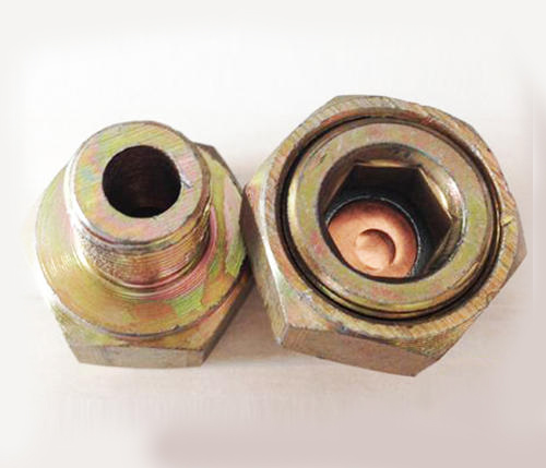 2、防爆片工作原理:易爆塞塞體芯部壓著一塊在大于1.4Mpa即自行暴烈的易爆合金片(該合金片必須向本廠購買,務必注意不要用其他金屬片代替),當達到預定壓力時,易爆片破裂,工作液體和氣體從偶合器中噴出,即可防止過壓爆裂。